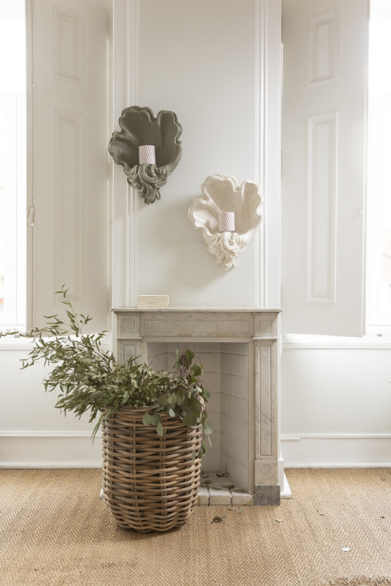 Aplique concha rocaille com pintura decorativa. Abat-jour vendido em separado