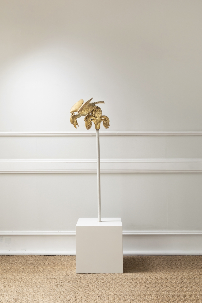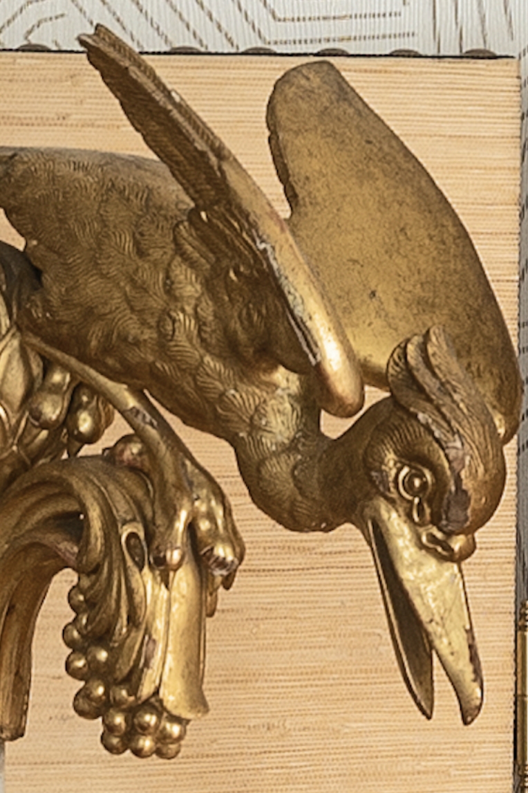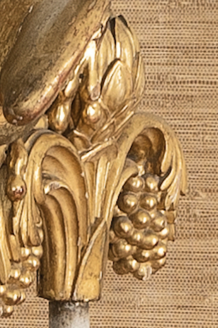 Conjunto Griffos de época em madeira entalhada, revestidos a folha de ouro brunida, finais séc. XVIII, sob bases quadradas em madeira lacada